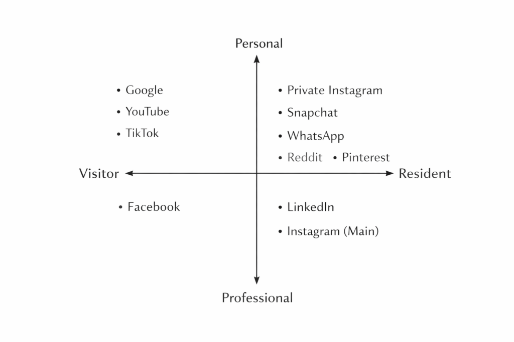 The Visitor and Resident framework offers a useful way to understand how individuals engage with digital platforms based on identity and presence rather than frequency of use. Rather than measuring how often a platform is accessed, the model emphasizes whether a user treats a platform as a tool for consumption (Visitor) or as a space where identity is expressed and maintained (Resident). Mapping my own digital practices allowed me to reflect more critically on how my personal learning network and digital identity are shaped across platforms.